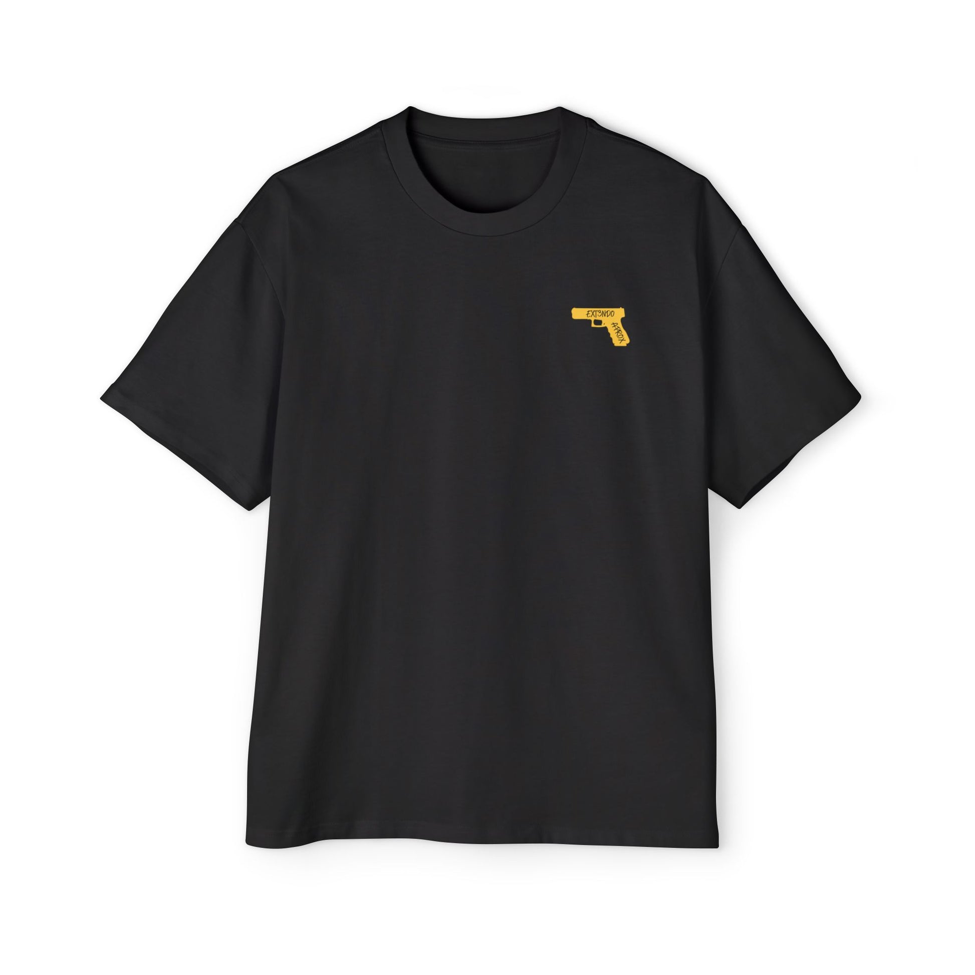 Make a statement with this standout oversized tee featuring bullet hole graphics on the back and a striking yellow “Extendo” gun design on the front. Crafted for those who own their individuality, this tee is more than just fashion — it’s armor for the bold.